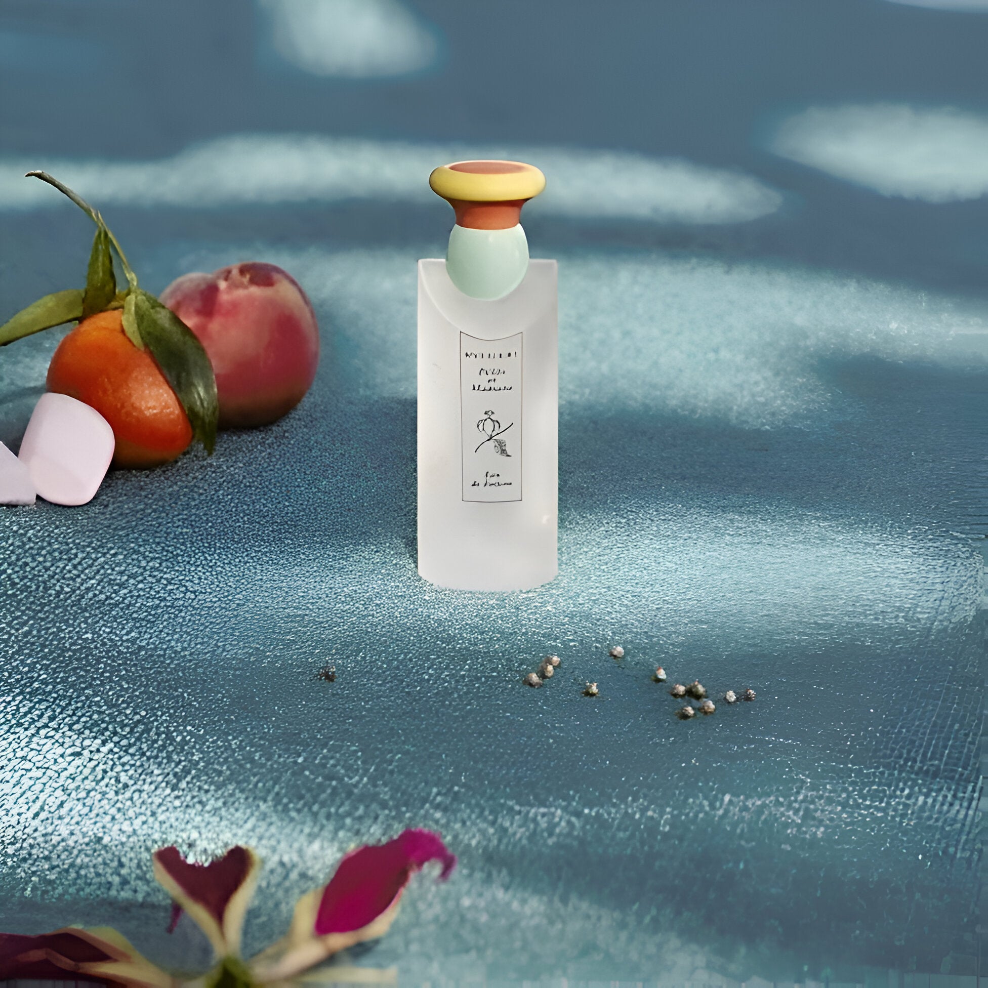 - Notes of chamomile, white peach, vanilla, iris, and talc