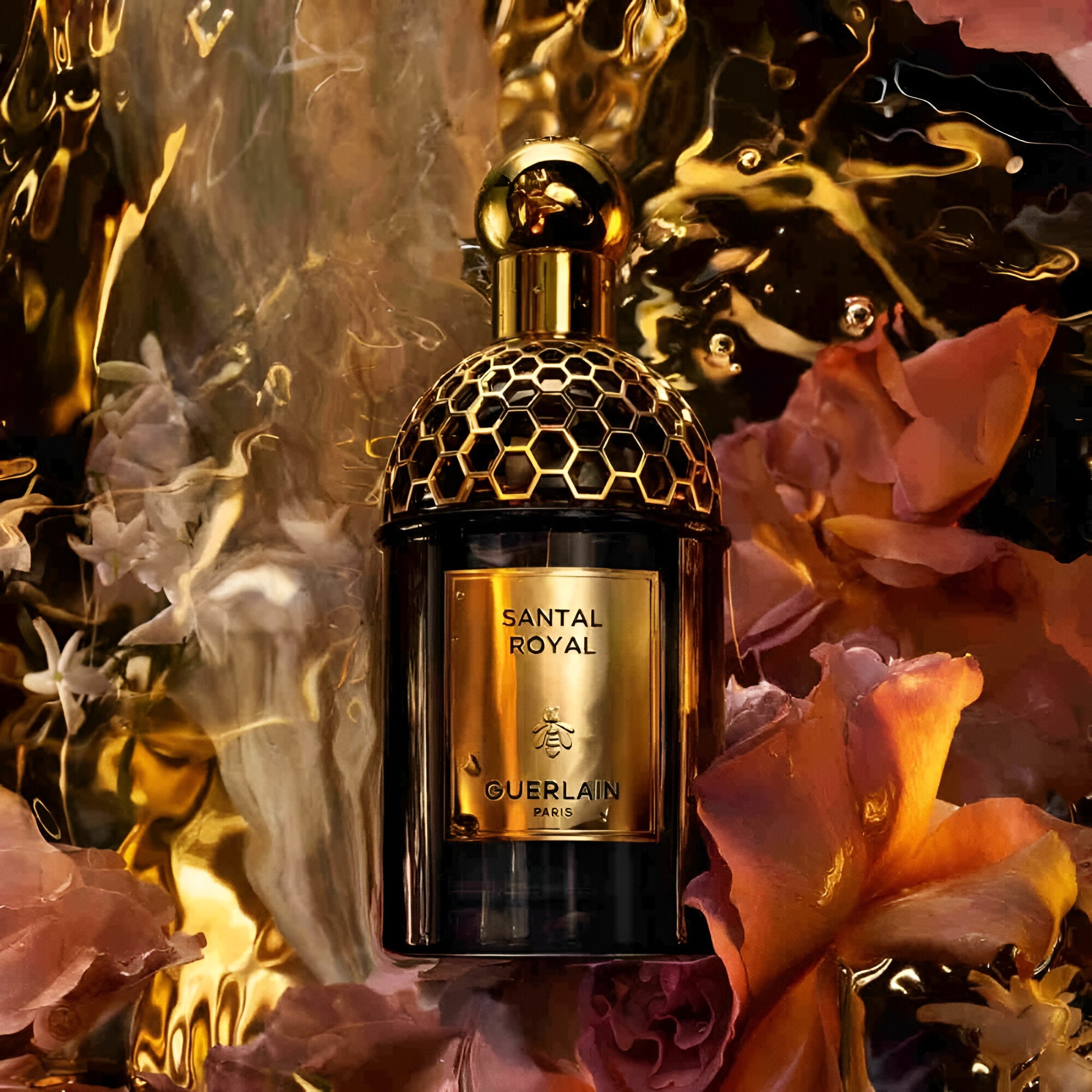 Guerlain Absolus Allegoria Santal Royal EDP smells like a rich and luxurious blend of creamy sandalwood, soft leather, delicate rose, and a hint of sweet liqueur, creating an enchanting and sensual fragrance that celebrates the beauty of nature.