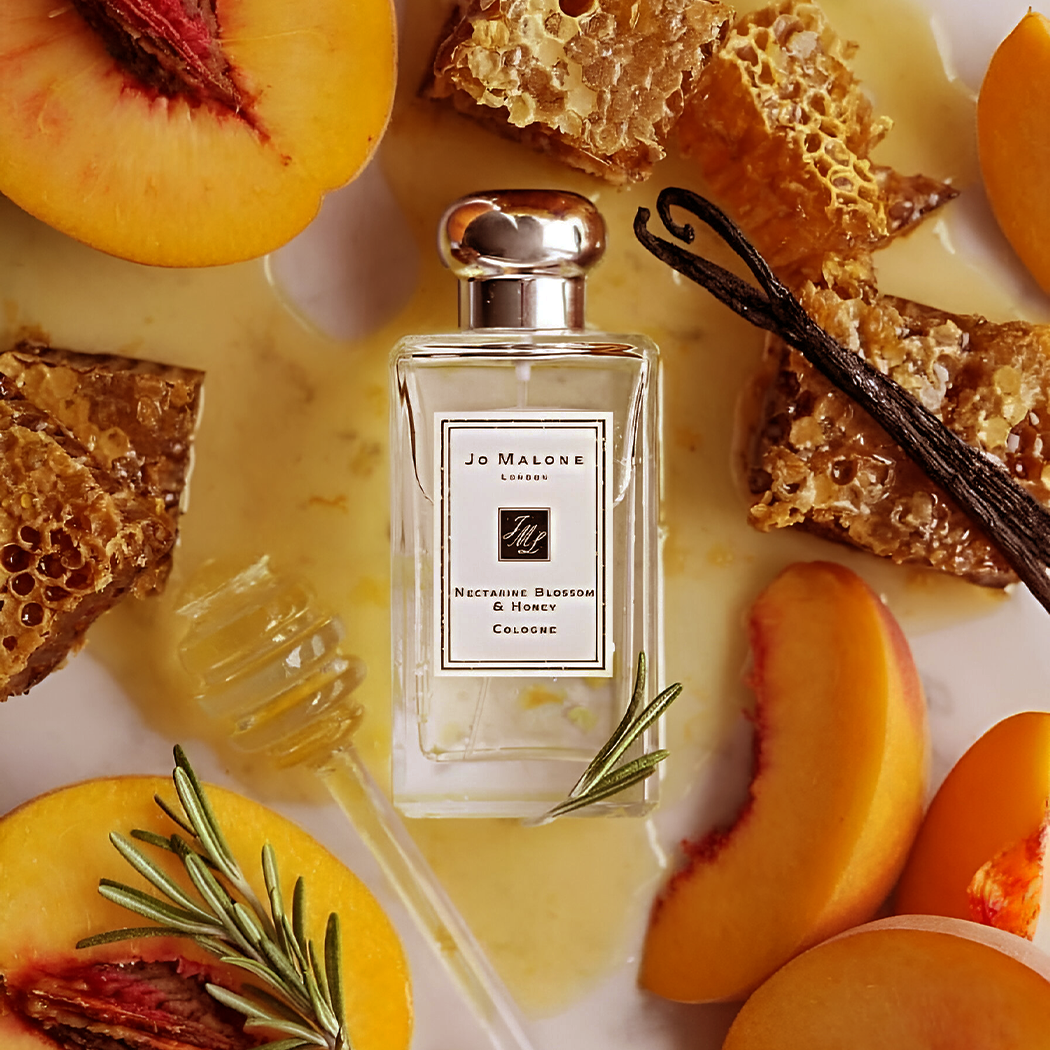 The Jo Malone Nectarine Blossom & Honey Cologne has a fresh, fruity scent with hints of ripe nectarines and a sweet touch of honey.