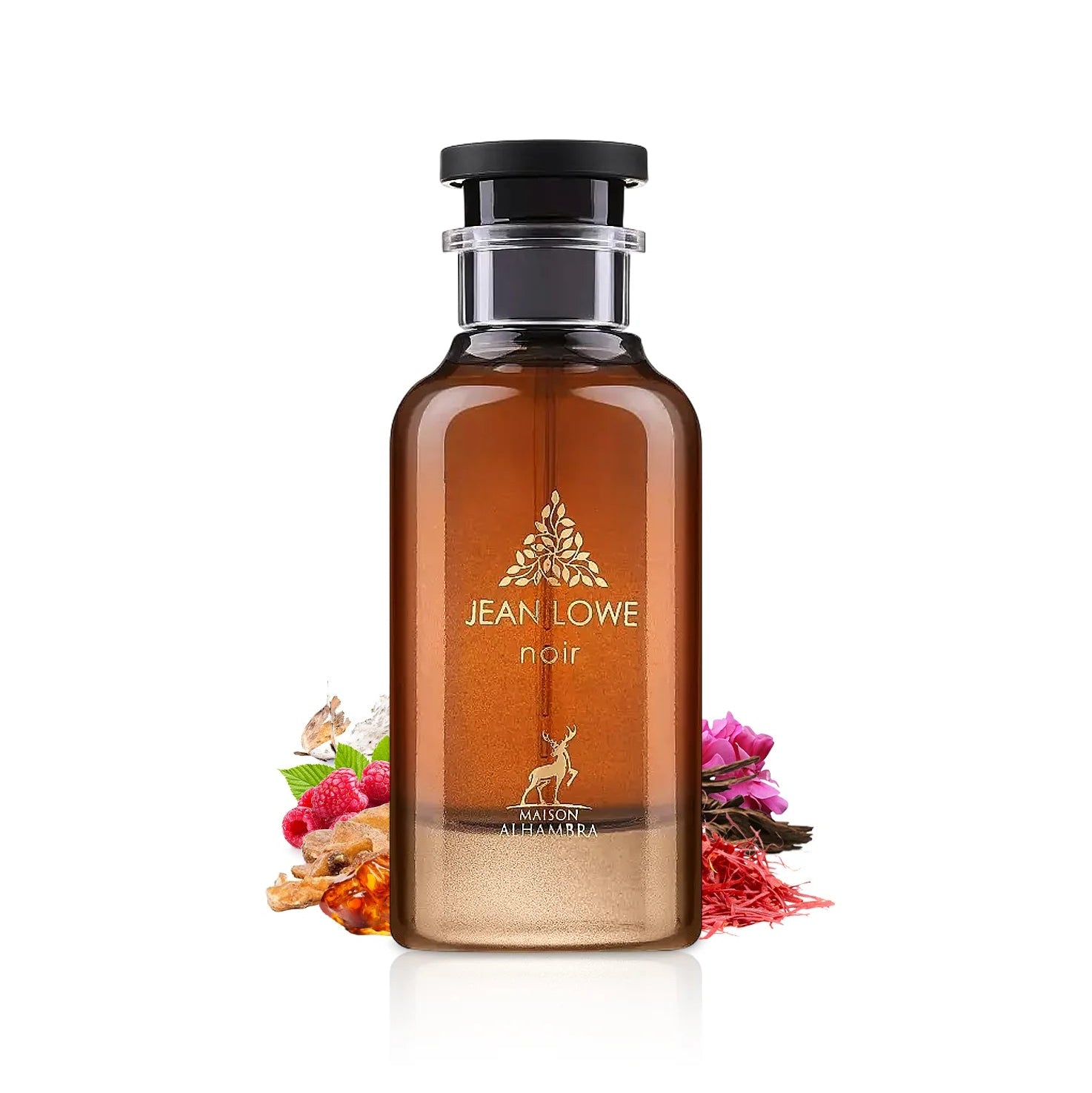 Maison Alhambra Jean Lowe Noir EDP smells rich and luxurious, combining the warm, woody scent of oud and incense with the sweetness of saffron, rose, raspberry, and amber.