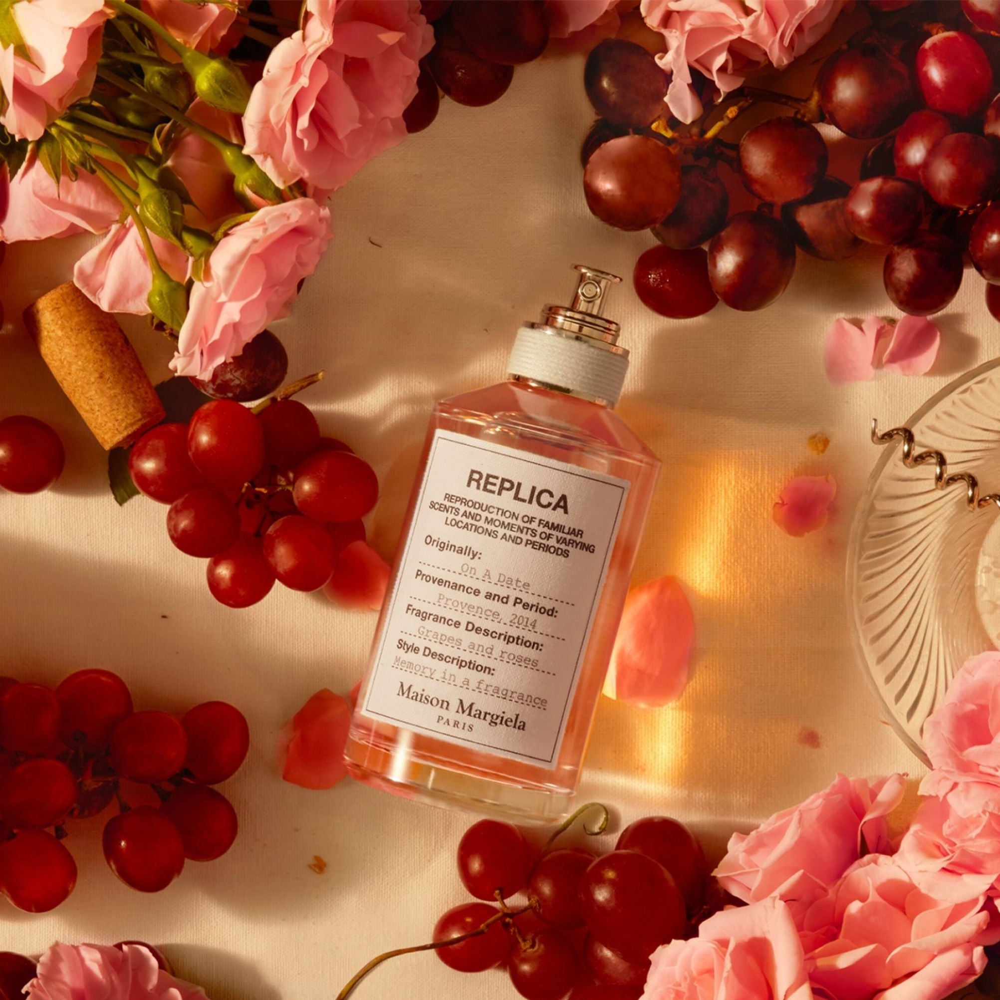 Maison Margiela Replica On A Date EDT has a scent that combines ripe grapes with the freshness of rose essence, reminiscent of a romantic summer evening in Provence.
