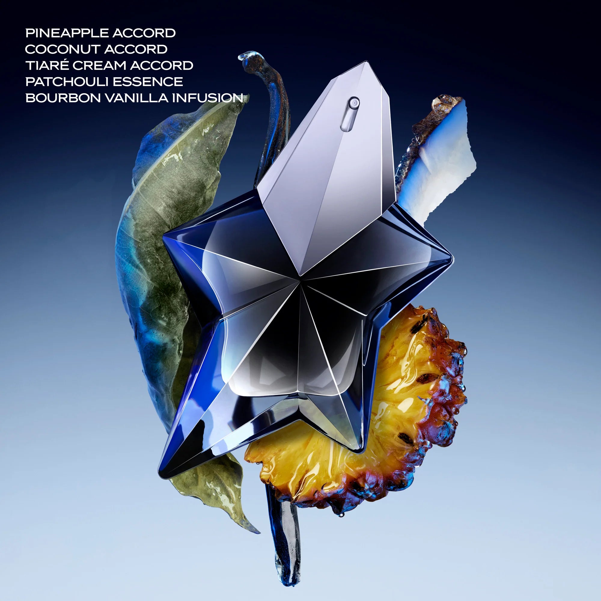 Mugler Angel Fantasm Scented Candle smells like a delightful mix of sweet pineapple, fresh bergamot, creamy coconut, and floral tiare, rounded out with warm notes of patchouli, bourbon vanilla, and amber, creating a dreamy and indulgent atmosphere.